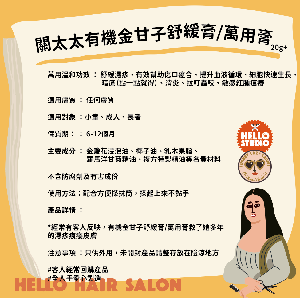 *經常有客人反映,有機金甘子舒緩膏/萬用膏救了她多年的濕疹痕癢皮膚🥰