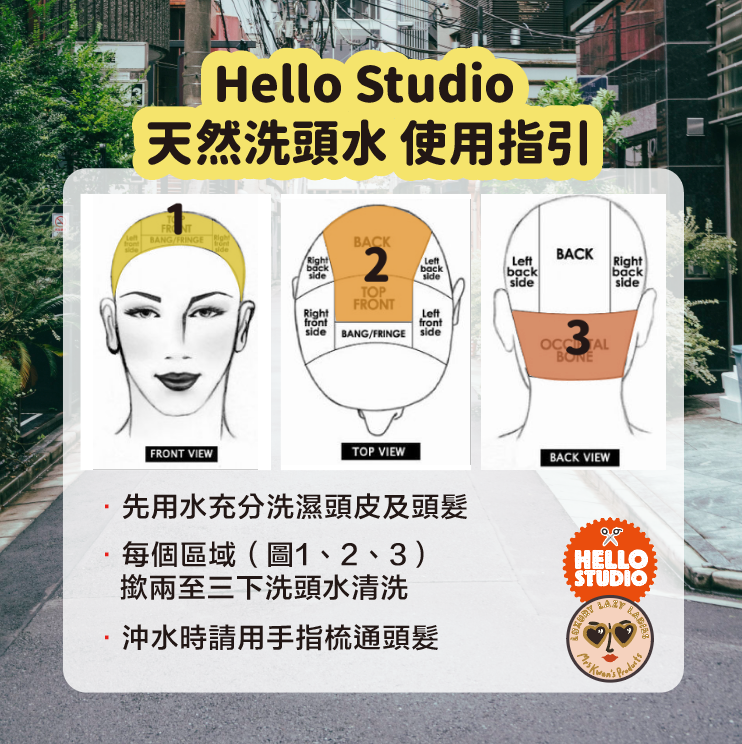 頭部分前、中、後部分,每次泵兩至三下洗頭水清洗。